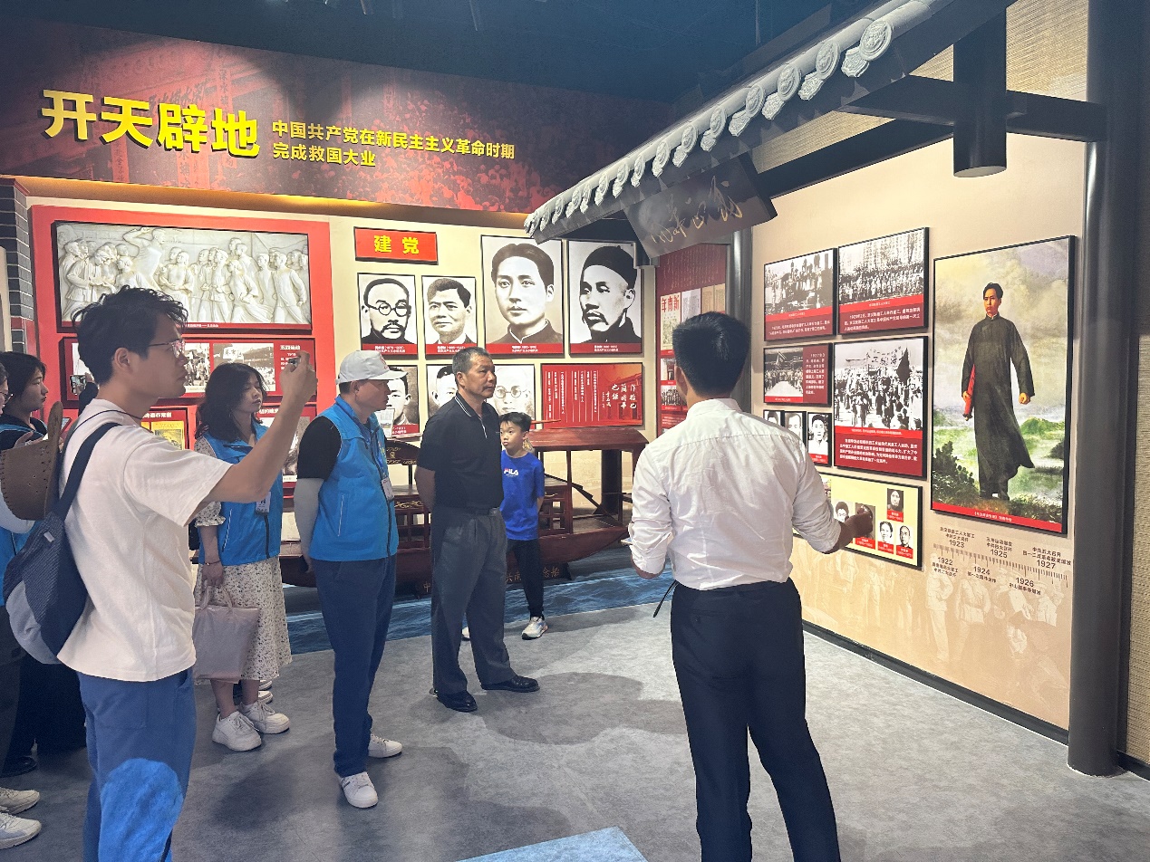 7月19日,志愿服务队全体师生干部前往喀什大学思想政治教育基地参观学习,开展党建活动。喀什大学医学院党支部副书记马志邦接待并亲自作讲解。全体师生干部先后参观了《真理的力量》《领航新时代》《伟大的变革》《共圆中国梦》四个展厅,学习了党在长期领导中国革命与建设的伟大实践中创造和积累的丰富历史经验以及在中国共产党治理下新疆的发展历史等内容。参观完基地之后,唐焕文院长表示,思想政治教育基地建设得恢弘大气,内容全面、内涵丰富,希望大家不忘初心、牢记使命,立足新时代,展现新作为。尤其值得一提的是,参观过程中,拉齐尼·巴依卡爱国护边的执着坚守、推动民族团结进步的扎实工作、舍己救人的英雄壮举感动了在场师生。全体师生干部前往喀什大学拉齐尼湖畔向这位英雄鞠躬致敬,表达敬仰之情。此举极好地拓展了党建活动的内容,对党员师生干部进行了一次深刻的党性教育,真正达到了“在活动中学习,在活动中提高”的效果。