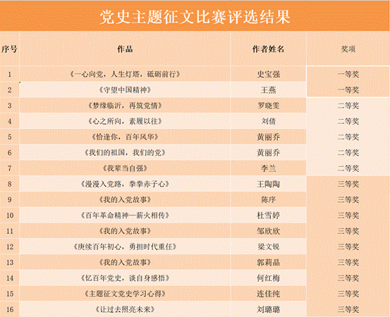 虽然同学们学习科研任务繁忙,甚至有些同学身处抗疫一线,但都阻挡不了大家的参赛热情。此次“我的入党故事”主题征文共有16篇作品入选,“百年党史我来讲”主题演讲有6名同学以视频录制的方式参加决赛。