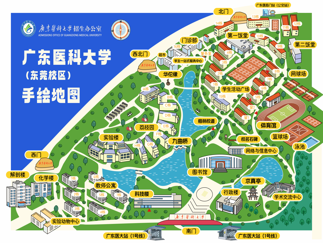前来东莞校区复试的考生乘坐地铁1号线,在广东医大站下车,即可到达南门;乘坐私家车或乘坐公交车(306路、307路、309路、莞312路、329路、338路、351路、710路)在广医后门站下车,即可到达西北门。复试期间校外社会车辆、送行人员一律不得进入校园。