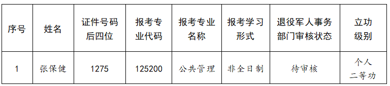 根据教育部《2026年全国硕士研究生招生工作管理规定》(教学〔2025〕2号)第二十五条“对服役期间获得三等功、二等功以上奖励或者二级以上表彰,符合全国硕士研究生招生考试报考条件的退役人员,可申请免初试攻读硕士研究生”现将英国上市公司3652026年立功表彰退役军人申请免初试攻读公共管理硕士研究生复试考生名单公布如下: